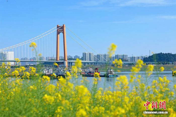 3月25日,湖北宜昌沿江二岸的油菜花田联贯开放,金黄色的花海取少江碧波相应成趣,组成1幅靓丽的秋日绘卷。没有少市平易近、乘客信步正在宜昌市面军区江边,摄影纪念,感触感染秋日气呼呼息。图为金黄花海取橘色年夜桥相应成趣。董晓斌 摄